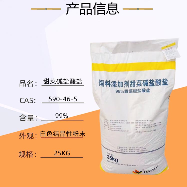 產(chǎn)品名稱:甜菜堿鹽酸鹽 Product Name: Betaine HCl 別名:鹽酸甜菜堿 英文名:(Carboxymethyl)trimethylammonium hydrochloride Cas號:【590-46-5】 性 狀:白色至微黃色結(jié)晶性粉末,味呈酸澀,具吸潮性,易溶于水、乙醇,難溶于乙醚、三氯甲烷,遇堿反應(yīng)。